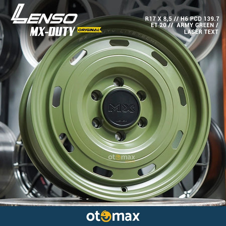 Velg Lenso MX-Duty Original Ring 17 Army Green / Laser Text tersedia di Otomax Store, toko spesialis velg dan ban dengan produk original dan layanan profesional. Anda bisa mendapatkan:
